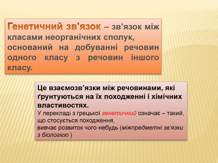 Генетичні зв’язки між основними класами неорганічних сполук