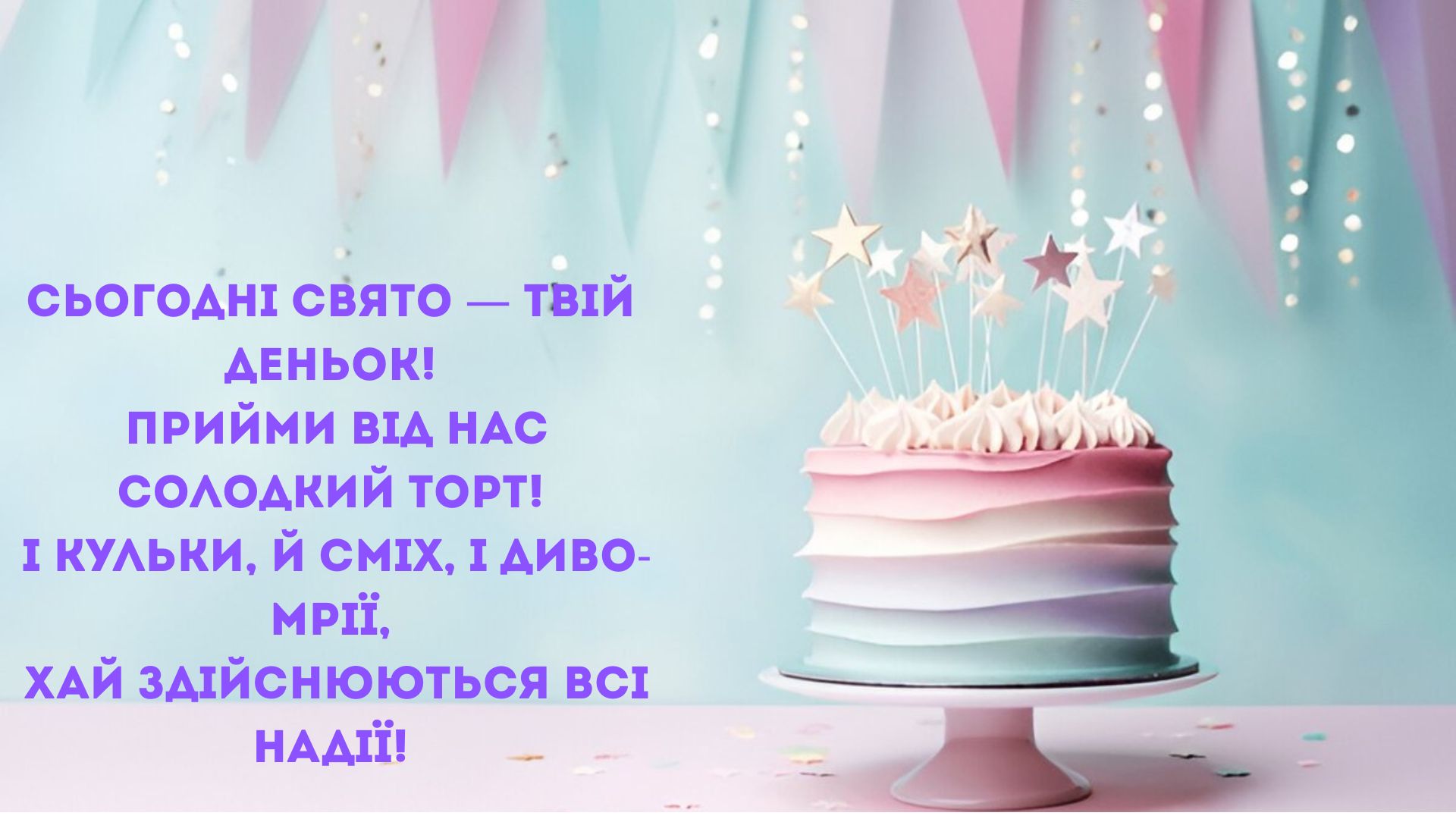 Вітаю зі святом! Нехай життя приносить тобі безліч нових можливостей і цікавих подій. Будь щаслива, наче дитина, і ніколи не втрачай віри у чудеса. Ти заслуговуєш на найкраще!
